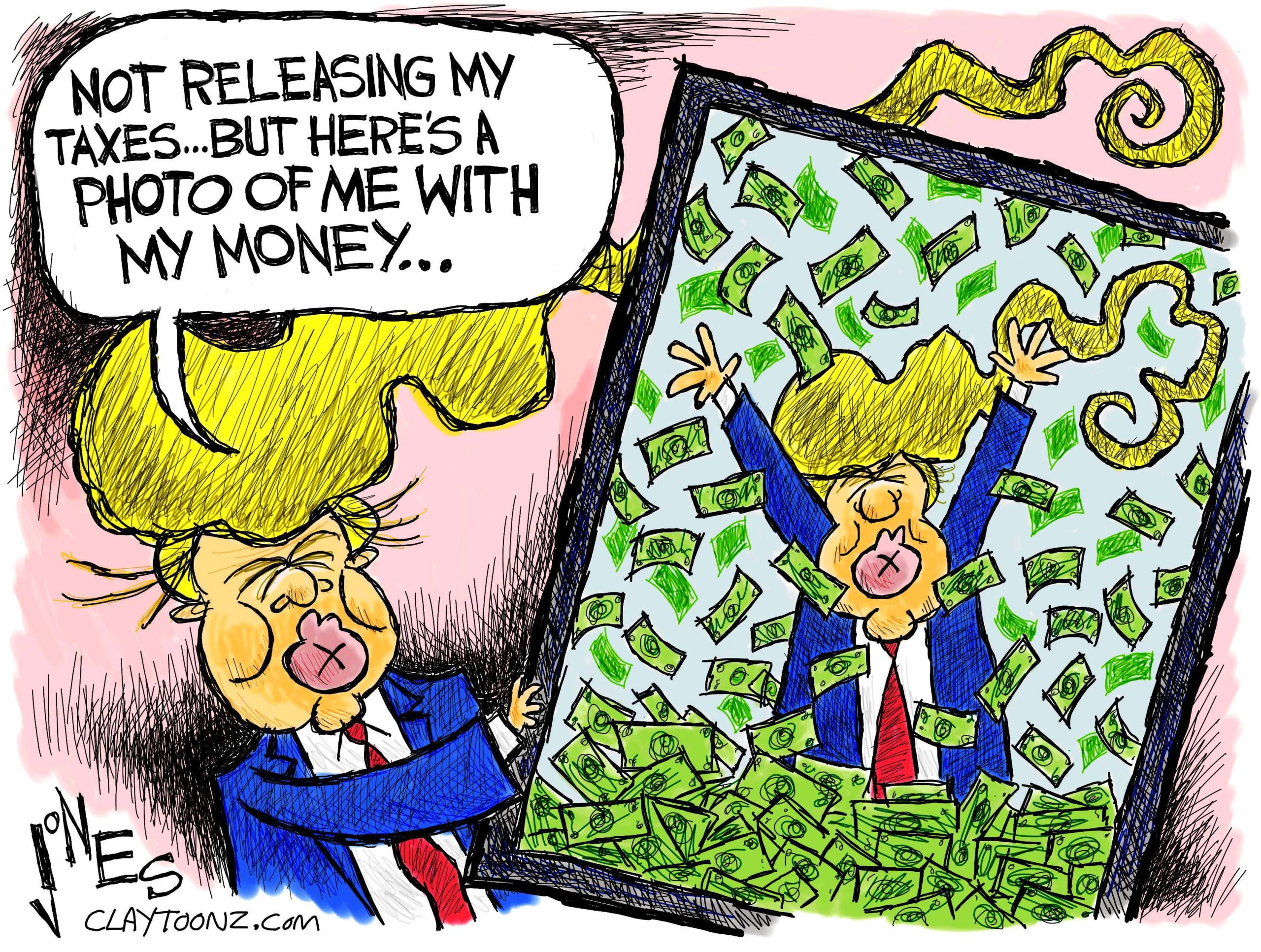 Finally we come to Trump’s taxes. The guy still won’t release them. He says he can’t because he’s being audited. Yes he can. The audit doesn’t stop that. He released a financial report to show us that yes, he really is rich. That doesn’t show how he made his money, where his money comes from, who he’s in bed with, or how much he gives to taxes.