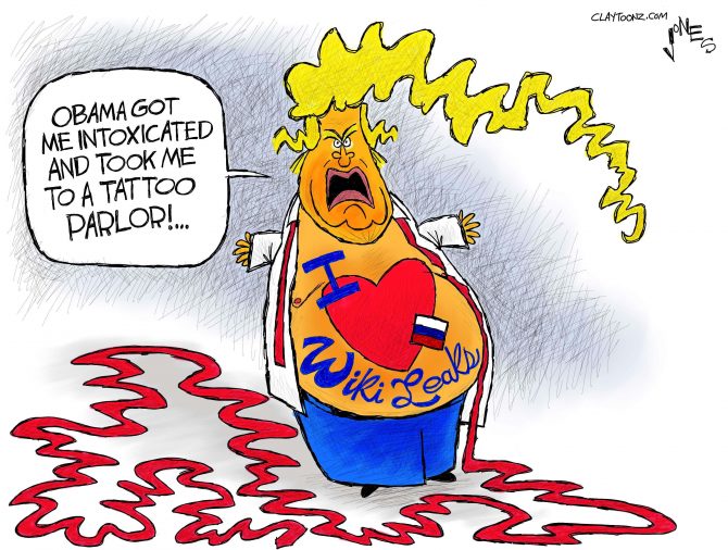 Obama and our intelligence networks were aware of Putin ordering his agents to corrupt our election, the attempts to destabilize our democracy, and the effort to throw the election to Donald Trump. A lot of the information remained classified until after the election, but it was public knowledge way before November what the Russians were up to. I remember this. I drew a lot of cartoons about it. I remember Donald Trump denying it was happening. 2016 was not a figment of my imagination though it was kind of a nightmare.