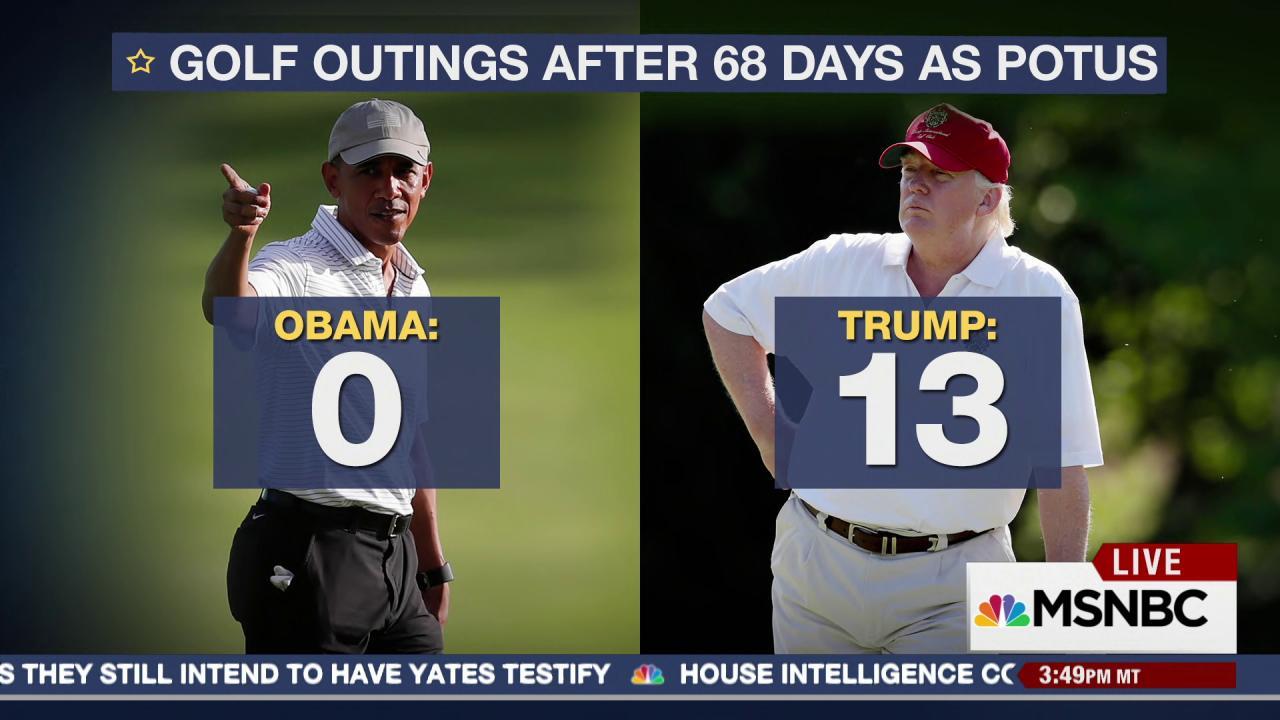 Trump has found time to play golf 14 times since his inauguration. At this point in his presidency, Obama hadn’t yet taken up the game; when he did, one of his most vocal critics was one Donald J. Trump, who complained that a president should have more important things to do. Maybe now Trump has figured out how to Make America Great Again with a pitching wedge.