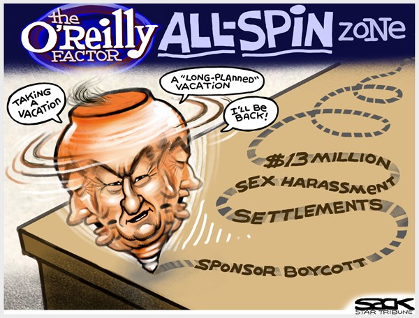 Cartoon: Bill O’Reilly Spin April 13, 2017 by CAGLE CARTOONS Leave a Comment Steve Sack, The Minneapolis Star Tribune
