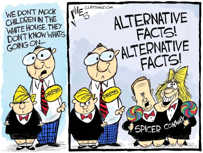 Which is why the two other children currently in the White House needs to be taken to task and held accountable. Kids say the darndest things and they can get away with it. It’s cute when they say “pasghetti.” It’s not cute when an adult says “pasghetti,” or when they scold the media, issue veiled threats, lie, and then say their obvious lies were just “alternative facts.”