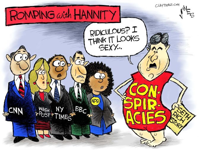 Fox eventually retracted the story, though without an apology. Hannity, however, on his radio show said that he retracts nothing and will continue to push the story. Hannity was relentless in pushing the bogus conspiracy theory and said that he “is not Fox News.” Later, on his TV show, he said that he would stop covering the issue “out of respect for the family’s wishes — for now.” It turns out he IS Fox News. That means his bosses, and probably a few lawyers clamped down on him. Also, advertisers are bailing on his show faster than if he was spotted at Bill O’Reilly’s strip-club-bachelor party.