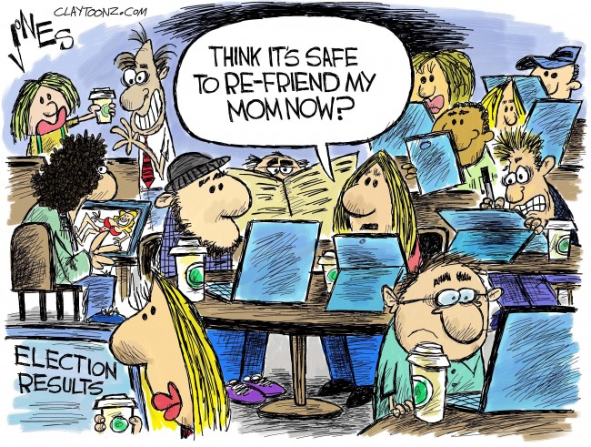 Despite my open mindedness toward people I disagree with I have had to block a few people. Not so much because they disagree but for other reasons. I blocked one person for constantly bombing my wall with memes and harassing my friends. I had to block a couple others for similar reasons. And I block people who tag me in those stupid Ray-Ban ads but that doesn’t count (someone once put a porn picture on my wall too which had to go). But usually I’m the one who is unfriended. I have been unfriended a lot. Conservative cartoonists have been unfriending me waaaaaaaaaaaaaaaaaaay before Donald Trump announced he was running for president. You name the cartoonist, yeah he’s probably unfriended and blocked me. In their defense I am kind of a jerk.