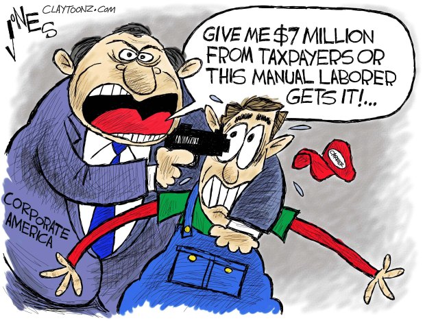 What Trump has done is send a very loud signal to corporate America that they can hold their employees hostage. Trump shows he’s willing to give them “yuge” tax breaks to stay. This is like when NFL teams threaten their current cities by talking about moving to San Antonio. It’s how they get new stadiums and sky boxes.