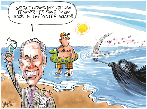 GOVERNOR ABBOTT OPENS TEXAS (Cartoon) March 5, 2021 by CAGLE CARTOONS Leave a Comment Dave Whamond, Canada, PoliticalCartoons.com