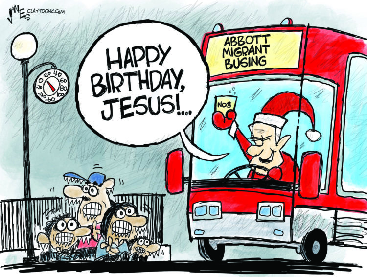 Greg Abbott and other Republicans are trying to make a point about immigration, but the only point they’re making is that they’re assholes. And that may be the point they’re really trying to prove because their base loves it. But I bet Jesus doesn’t.