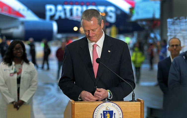 Even Massachusetts Gov. Charlie Baker, who is known for his businesslike demeanor, has shed tears during press briefings several times in recent weeks. When he recently recounted how his best friend lost his mother to the disease, he choked up.