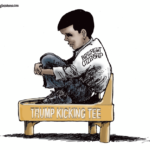 Along with Vladimir Putin, Walmart, Apple, Bruce Springsteen, every nation that’s a US ally, Donald Trump is at war with Harvard, and trying to remove government funding from the institution. Now, Trump wants to redirect $300 billion from Harvard to trade schools. Trump’s war with Harvard is Stupid vs Smart. Trump is stupid. For example, Trump doesn’t know that government … [Read more...] about TRUMP VS HARVARD (Cartoon and Column)