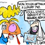 Donald Trump is a crook, and since he gets away with everything, he’s not even trying to hide it. The royal family of Qatar is going to gift a luxury 747-8 Boeing jumbo jet, which will be used as Air Force One. The jet, described as a “flying palace,” will have to be refitted to serve as Air Force One, and won’t be ready until shortly before Trump is “supposed” to leave … [Read more...] about Fly The Grifter Skies (Cartoon and Column)