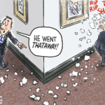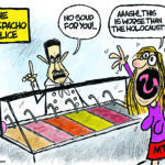 I knew there was going to be a lot of Soup Nazi jokes after Marjorie Taylor Greene had a flub and said “gazpacho” instead of “Gestapo” in one of her bewildering brain-dead yee-haw rants. But then I thought that it’ll be OK to use Soup Nazi in a cartoon, despite all the memes and possibly other cartoons because everyone else would miss the context. Hell, even while reading … [Read more...] about GAZPACHO POLICE (CARTOON AND COLUMN)