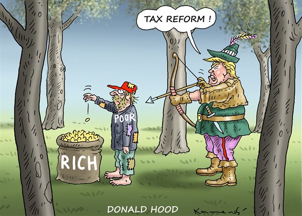 Then came his tax proposal — or rather, his single page of talking points. Whatever else is clear about the plan, it is a classic tax giveaway to the wealthy, especially to Trump himself. We can’t know for sure because he won’t show us his tax returns. But his outline is about as “populist” as the membership list at Mar-a-Lago.