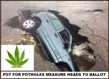 The measure will levy a 10% tax on all sales, wholesale and retail, of cannabis crops and products. Those revenues will be used to fill potholes and sinkholes, repave ripped up roadways and shore up failing bridges.