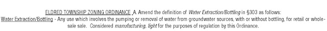 Because water extraction is only allowed in an area of Eldred zoned Industrial, Nestlé would have been unable to extract water from Gower’s property, which is zoned Commercial, without the zoning amendment. The amendment, which applied only to Eldred, was taken up by CJER without the knowledge of the full Eldred Board of Supervisors and was expedited by Darcy Gannon, the Eldred Planning Commission secretary. Gannon’s daughter, Gretchen Gannon Pettit, was a township supervisor at the time and Gower’s girlfriend.