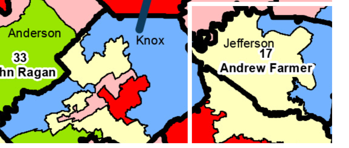Take a look at the widespread gerrymandering in Tennessee state house districts. Click/tap an image to see it in full size.