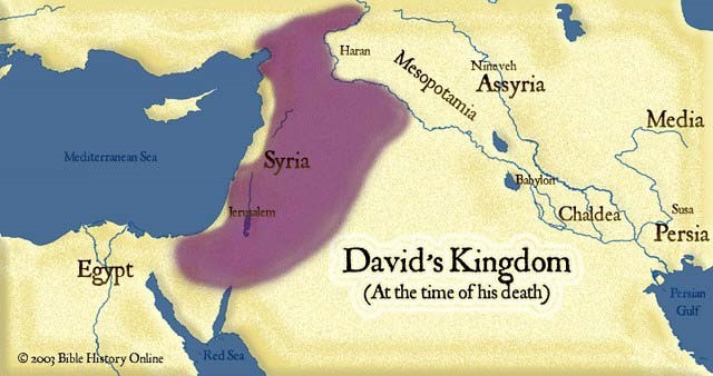 There is a lot of confusion about the variety of peace plans offered in the past for an Israel-Palestine peace. To start this journey of understanding we should begin with Israel under King David. That is the reference point of the radical religious Jews. As you can see in the map below, Israel consisted not only of the present day Israel but also large parts of Lebanon, Syria, Iraq and the Sinai part of Egypt.