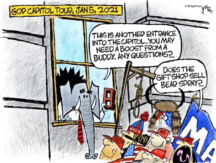 The January 6 Committee is asking Republican House member Barry Loudermilk to voluntarily testify about a tour he gave of the capitol on January 5, 2021. For the slow kids (Republicans), January 5th was the day before January 6th, the day of the Trump terrorist attack. The speculation here is that Loudermilk didn’t give a tour as much as he conducted a reconnaissance mission.