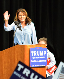 Sarah Palin clearly agreed with those sentiments. Warming up the crowd before Trump’s arrival, she complimented Trump for “not giving a flying flip about Wall Street, special interests nor political correctness nor those sheep in the media. Their heads are still spinning. What you have tried to do to Donald Trump and all of his supporters—it’s only proven that we were right. Do you know how thoroughly distrusted you are, mainstream media? Well he is now ‘We the People’s nominee, so suck it up, cupcake! Go see the pundits; they are still so very confused. I guess they did not realize that we meant what we said when we said ‘Enough! The status quo has got to go!’”