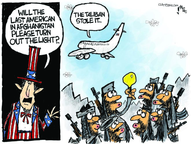 As for all the material we left behind, it’s another cost of this two-decade failure. Let it go. And I would have told the last American soldier in Afghanistan to turn out the light, if there were actually any lights in Afghanistan.