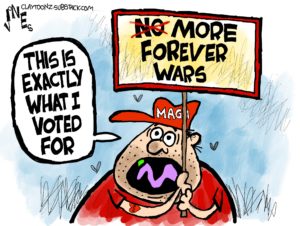 I seem to remember that our brave president found a way to forego military service during the Vietnam War. I wouldn’t call him a draft dodger, but the poor guy found a podiatrist who said that bone spurs on his feet would prevent him from being a soldier and he never served in the military. Five deferments! Subsequently, he called soldiers who fought for our nation suckers and losers. Now he’s asking these suckers and losers to go to war on his orders against Iran. What a hypocrite.